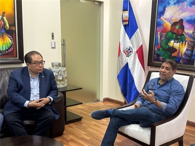 肖武男与多米尼加农业部长林伯·克鲁斯(右)会面