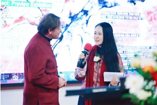 开幕式由本次展览策展人、上上国际美术馆秘书长靳青青女士和海归金融精英安安女士共同双语主持。靳青青女士首先致欢迎词,她感谢所有冒着冬季雪后严寒赶到上上国际美术馆出席活动尊贵的嘉宾们。本次展览并非一次普通的艺术展,而是匈牙利籍西班牙国际艺术大师Zoltán先生在中国北京的首次精品创作展,也是“马可波罗”当代艺术家在中国艺术之旅的启幕盛典。它旨在呈现一位欧洲顶尖皇家艺术家对中国深厚传统文化的无限热爱,他几十年的艺术积淀在中国文化的浸润之下产生了新的艺术创作爆发,他如马可波罗般在中国游历和写生采风,走进中国人民群众的生活之中,他用西方欧洲人的眼睛看中国青山绿水、城市美学与科技生活后,量变为他心目中的延续抽象表现主义风格的灵感作品库,从马德里到宁波到北京,这个艺术路线图必将回到欧洲,展示给世界人民。